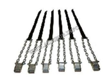 помощи текстильной стропы и специального замка универсальные цепи для колес.Могут